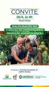 A Secretaria de Emprego, Trabalho e Renda (SETRE) da Prefeitura de Osasco inaugura terça-feira, 28/4, às 8 horas, por intermédio de parceria do Departamento de Economia Solidária com a Transpetro (empresa brasileira de economia mista, subsidiária da Petrobras), o primeiro Núcleo de Compostagem e Produção Agroecológica da cidade.