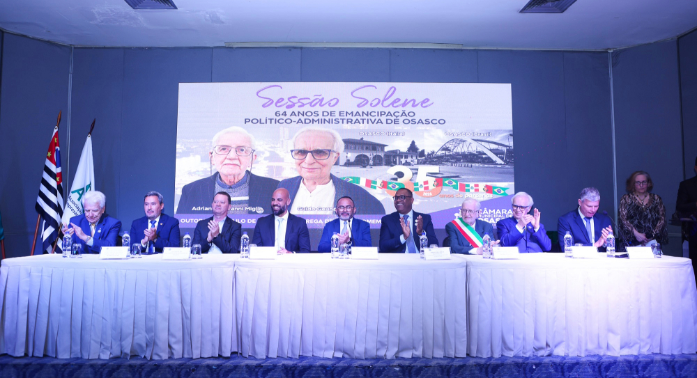 O prefeito de Osasco, Gerson Pessoa, acompanhado do vice-prefeito Lau Alencar, participou terça-feira, 2/3, da Sessão Solene da Câmara Municipal em comemoração aos 64 anos de emancipação político-administrativa do município (Lei nº 8/1962). Durante a cerimônia, realizada na sede da Associação Comercial e Empresarial de Osasco (ACEO), na Vila Osasco, foram entregues o Título de Cidadão Osasquense ao atual prefeito de Osasco di Itália, Adriano Giovanni Miglio, e ao ex-prefeito italiano em 1991, Guido Geúna. Também foi oficializada a entrega de uma placa comemorativa pelos 35 anos do Convênio de Irmandade entre as duas cidades.